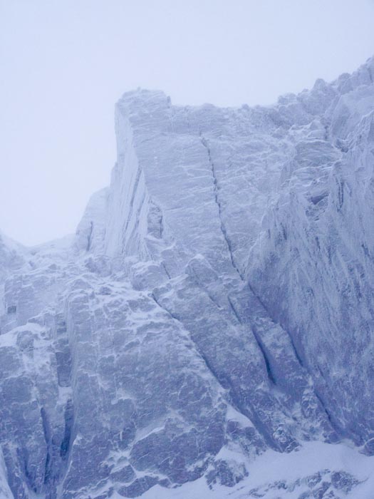 Greg Boswell and Will Sim solved a last great problem on Ben Nevis yesterday (December 31), when they climbed the thin overhanging crack to the left of The Secret. This crack had seen at least one previous attempt and had been talked about as a futuristic objective by a number of strong teams. The route was called To Those Who Wait and graded IX,9.